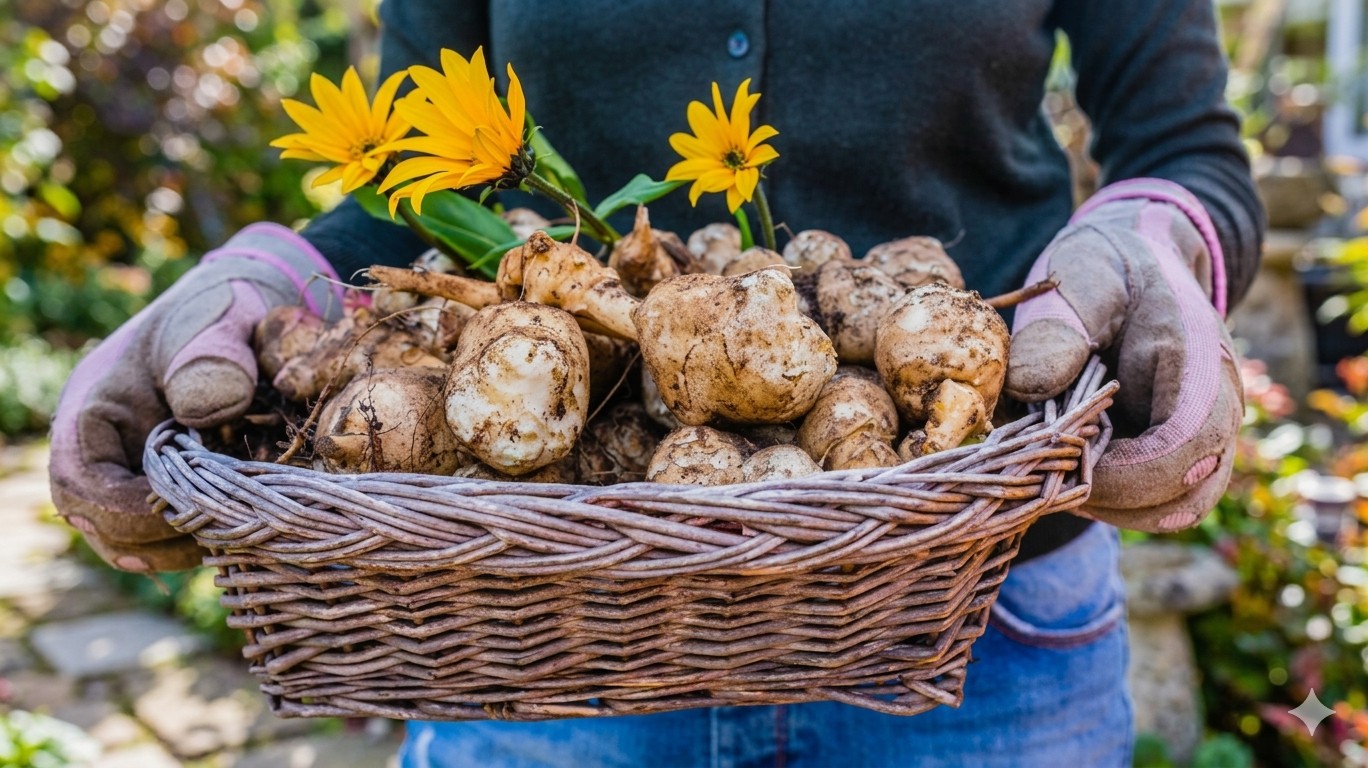 Зато топинамбур в Латвии вырастает до 2,5–3 метров в высоту, отлично переносит зиму, цветет красивыми желтыми цветами и дает урожай, который можно собрать поздней осенью или выкопать следующей весной. Сажают клубни растения в конце апреля – начале мая.