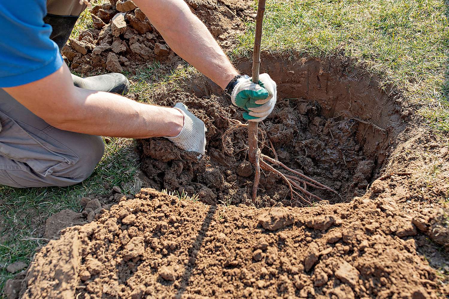Поэтому компост, перегной, – любое питание, которое вы хотите дать дереву, нужно класть в зоне корней и выше. Органика к тому же послужит мульчей и, постепенно разлагаясь, будет подпитывать корни растения. Минеральные удобрения заделываем в верхний слой почвы. Размер самой ямы не нужно делать чрезмерным – его просто должно быть достаточно, чтобы свободно расправить и разместить корни.