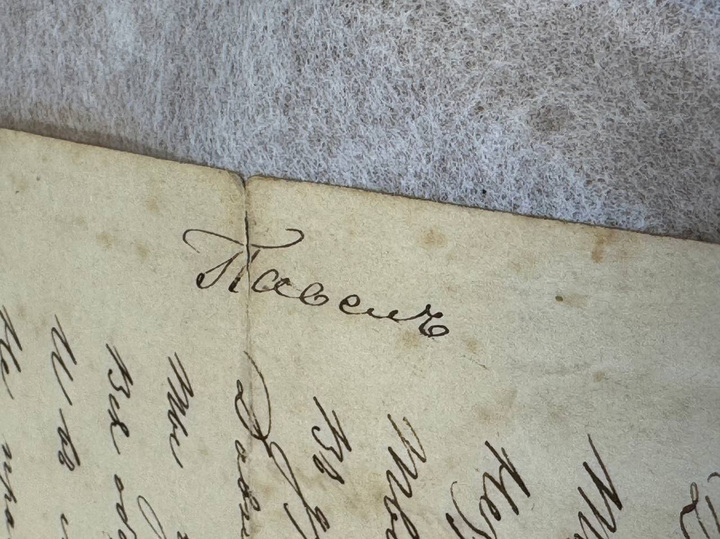 Сами листы с желтыми пятнами и округлыми следами. Может быть, в какой-то момент кто-то поставил на бесценное письмо стакан с чаем или уронил на нечистый пол. За два столетия-то чего только не могло произойти! Но главное — письмо сохранилось, оно прекрасно читается.