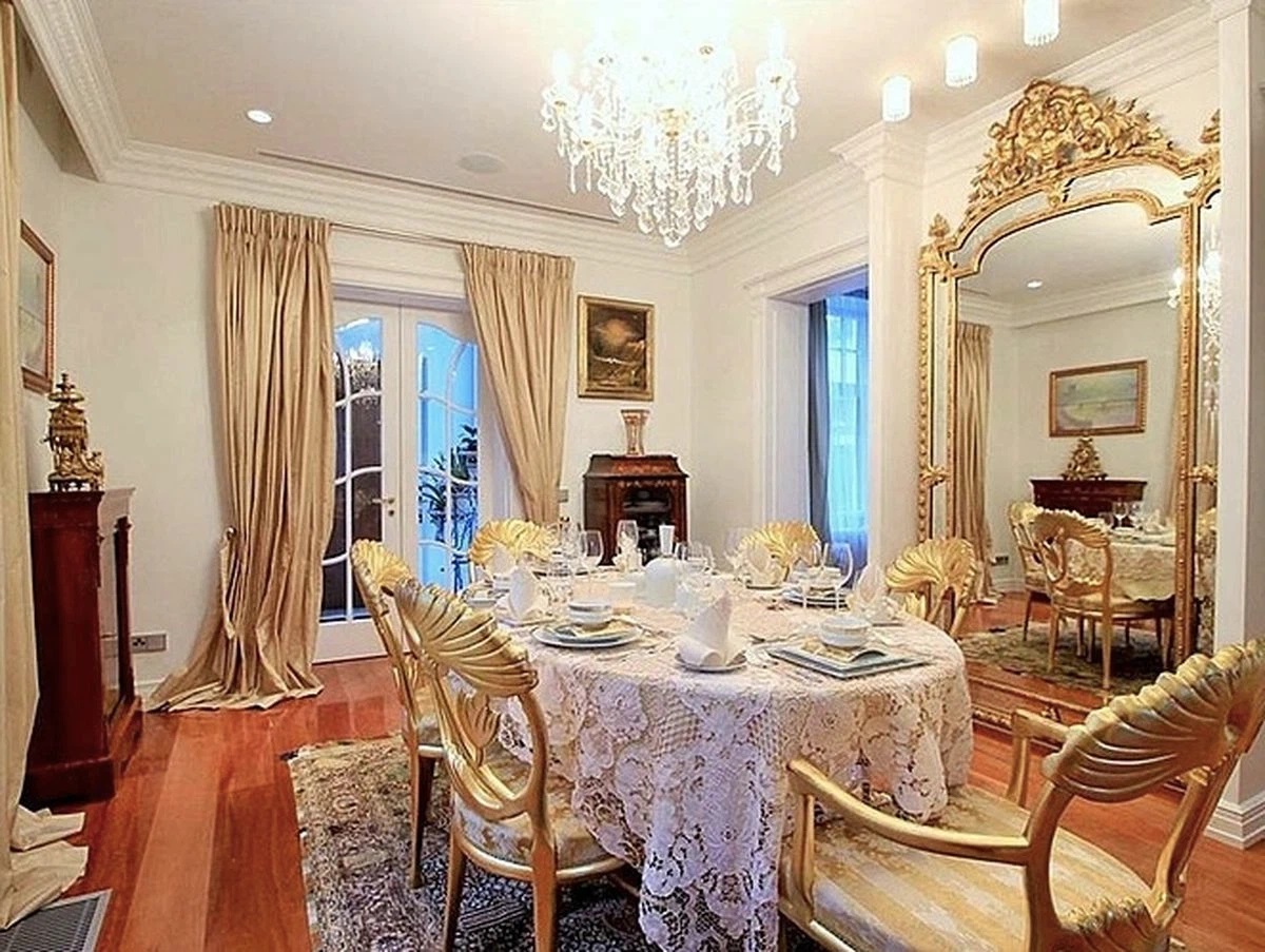 Если же говорить про обстановку, то тут главное – слово "золото". Золоченая кровать, позолоченная столовая, золотая мозаика в СПА... В общем, Алла Борисовна не желает расставаться с привычками той поры, когда она зарабатывала в России огромные деньги. Хотя, казалось бы, уже пора жить поскромнее.