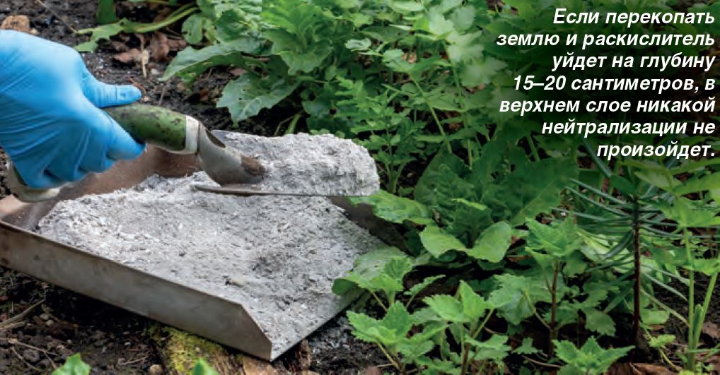 Если перекопать землю и раскислитель уйдет на глубину 15–20 сантиметров, в верхнем слое никакой нейтрализации не произойдет.