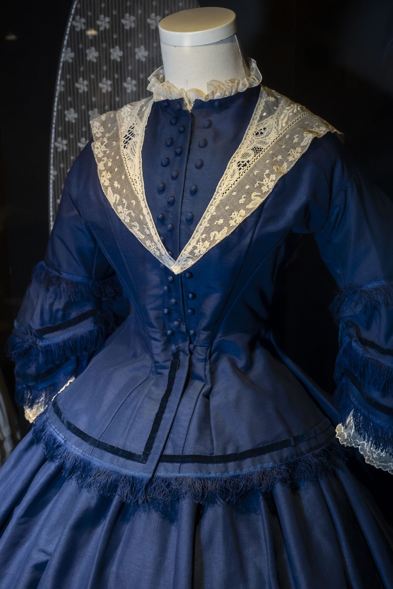 А детское платьев 1875-го из шелкового сатина, с отделкой кружевом, репсовой лентой и турнюром было отреставрировано в мастерских Музея моды.
