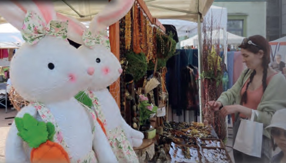 Традиционная предпасхальная ярмарка с праздничным настроением, товарами для Пасхи и весенними предложениями.